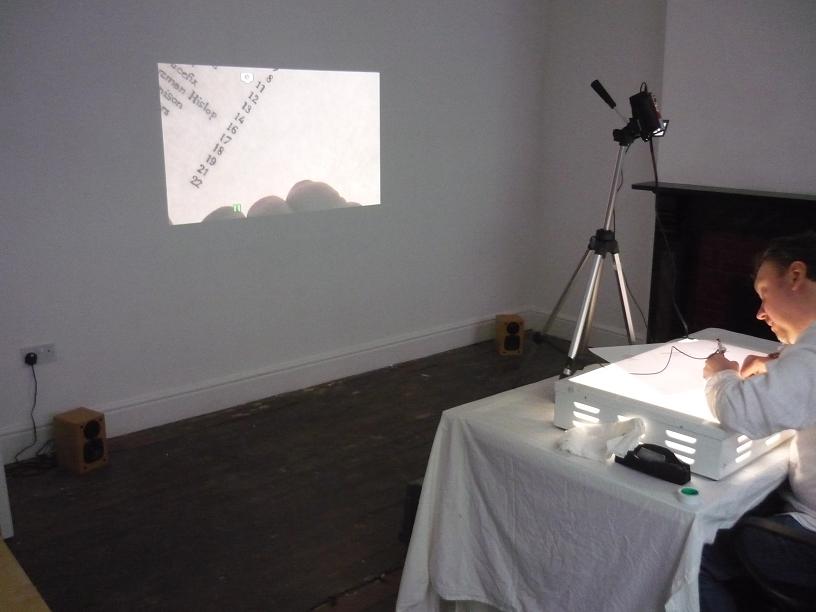 As sound artist in residence at Bank Street I was asked to contribute a sound element to the piece. Using a contact mic on writing surface and pen I amplified the sounds of pen nib scratches and shuffles of paper.